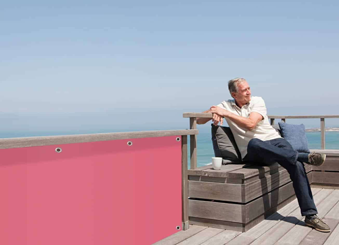 Ein einheitlich bedruckter Sichtschutz bringt Farbe und Struktur auf deinen Balkon – und schützt zugleich vor Wind und Blicken.